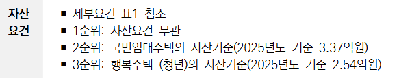 청년매입임대주택의 자산 요건은 순위별로 다릅니다.