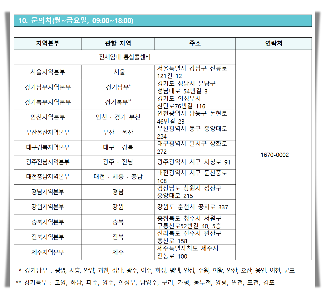 청년전세임대주택은 지역별로 담당 본부가 나뉘어져 있습니다.